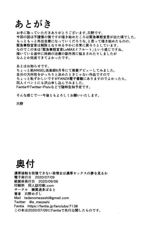 只野めざし:浓厚接触を我慢できない発情女は浓厚セックスの梦を见るか